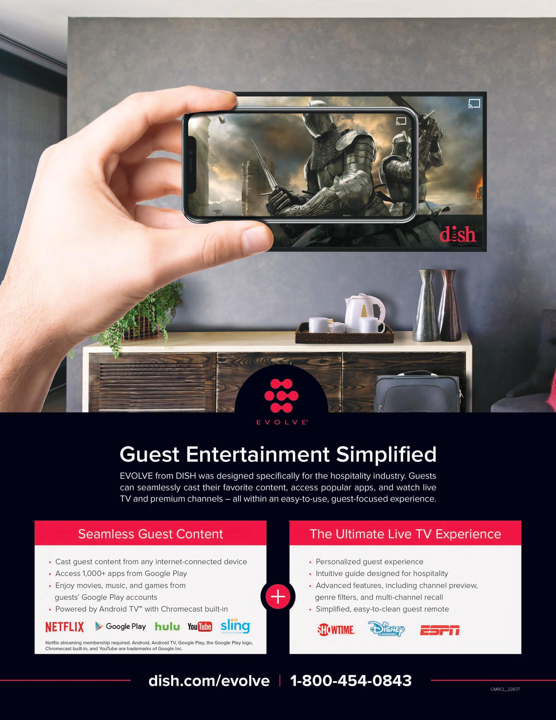 Evolve technology will take your guest in-room entertainment to a premium level. Easy to use and reliable.